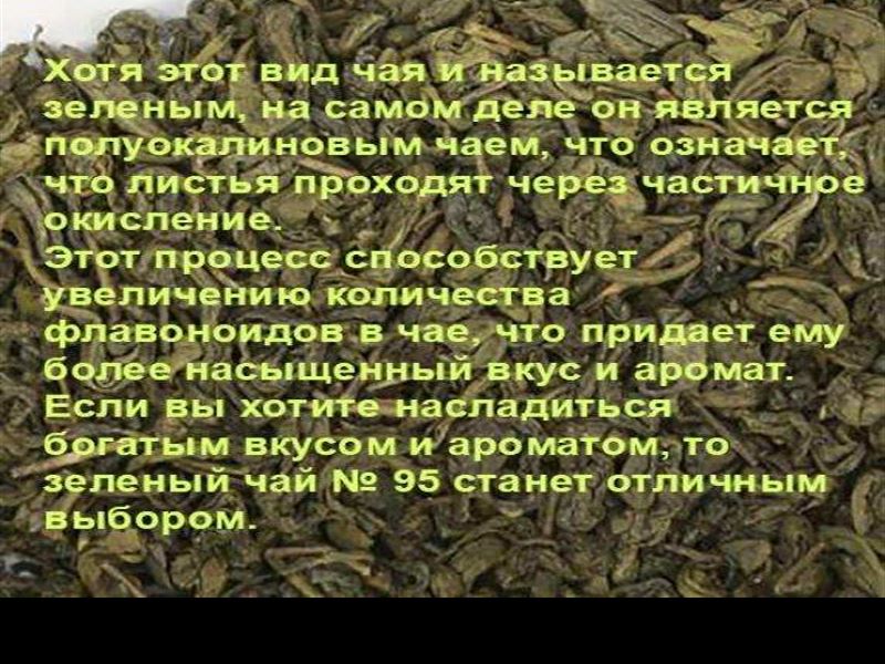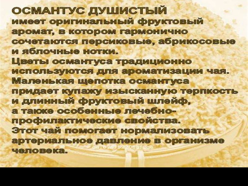 Сбалансированная смесь крупнолистового зелёного чая №95 с цветами Османтуса душистого (Osmanthus fragrans).